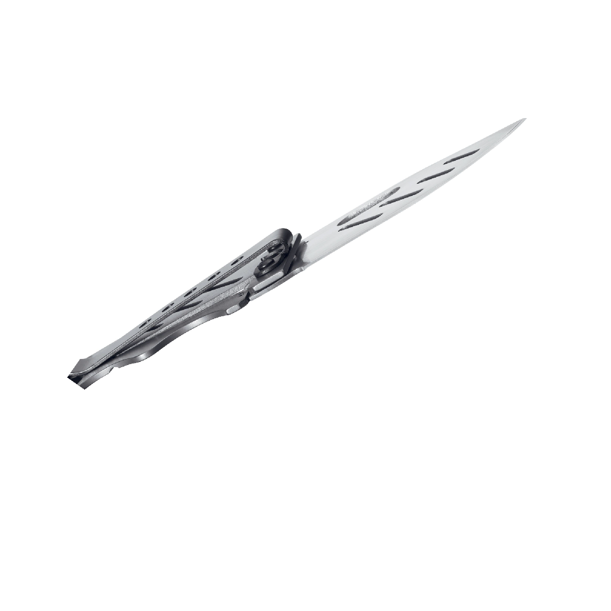 Alternatively, this extremely lightweight can also be worn comfortably with a clip in the shirt pocket or with the ball chain as a neck knife. The plate is made of titanium and offers a robust and reliable locking with the Framelock. To reduce weight, the board and blade have milled slots. The finger grooves and the G10 handle end ensure successful ergonomics despite the flat design. The design by John Kubasek, the well-known knifemaker from Massachusetts, is based on a 440C blade. An extraordinary companion for everyday life and leisure time. With removable clip (tip-down).
