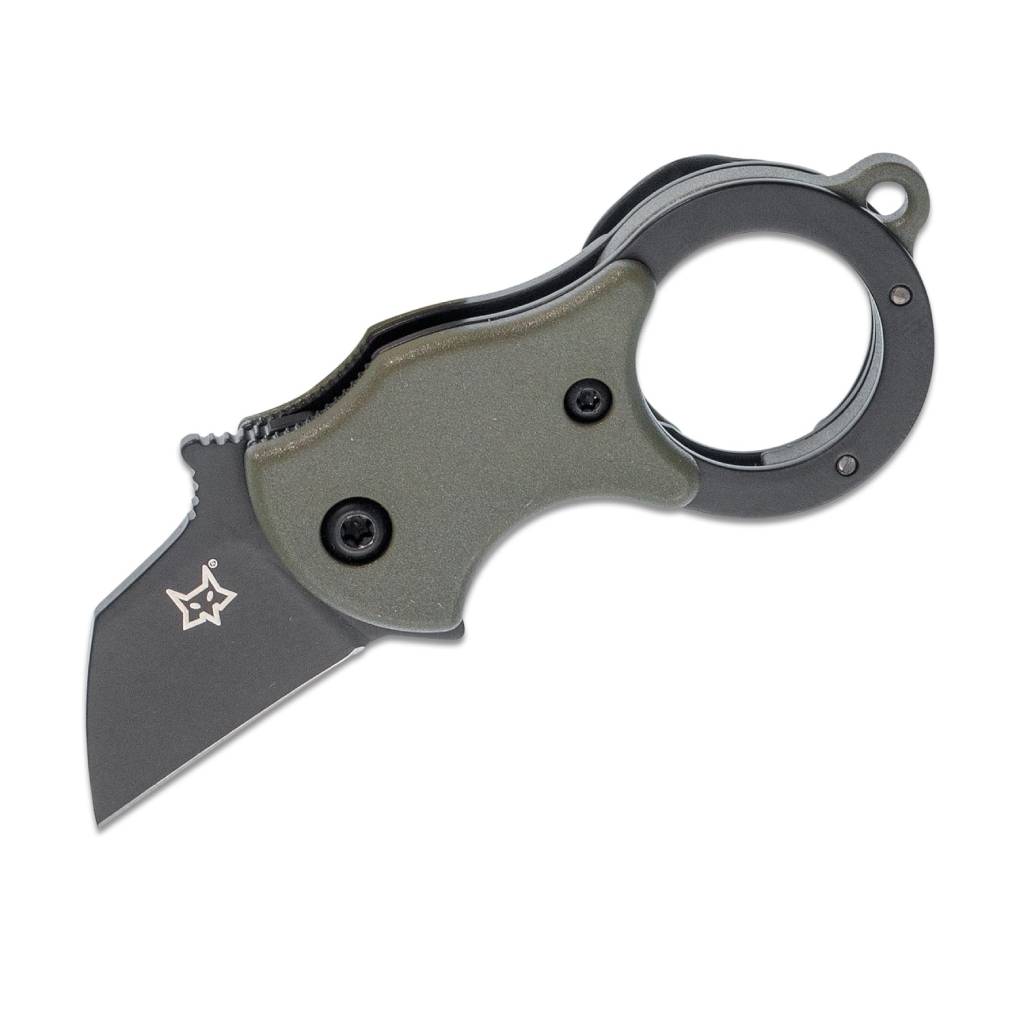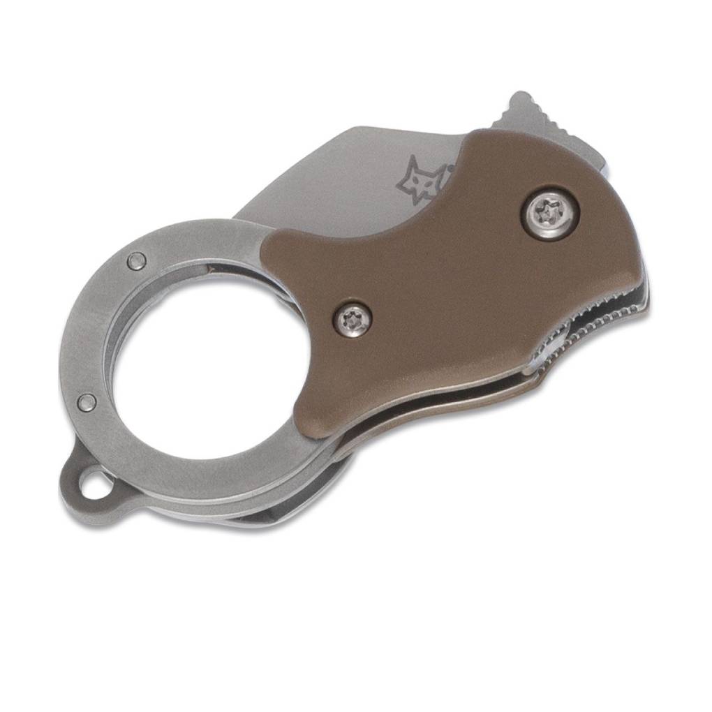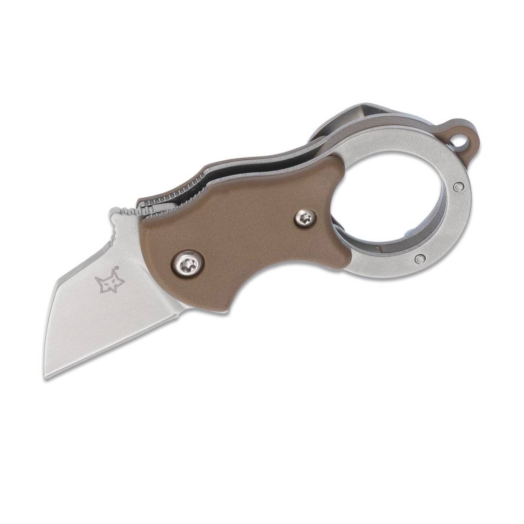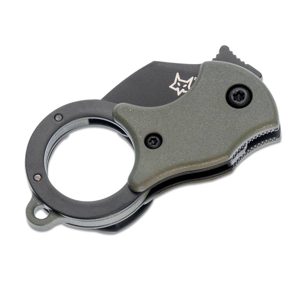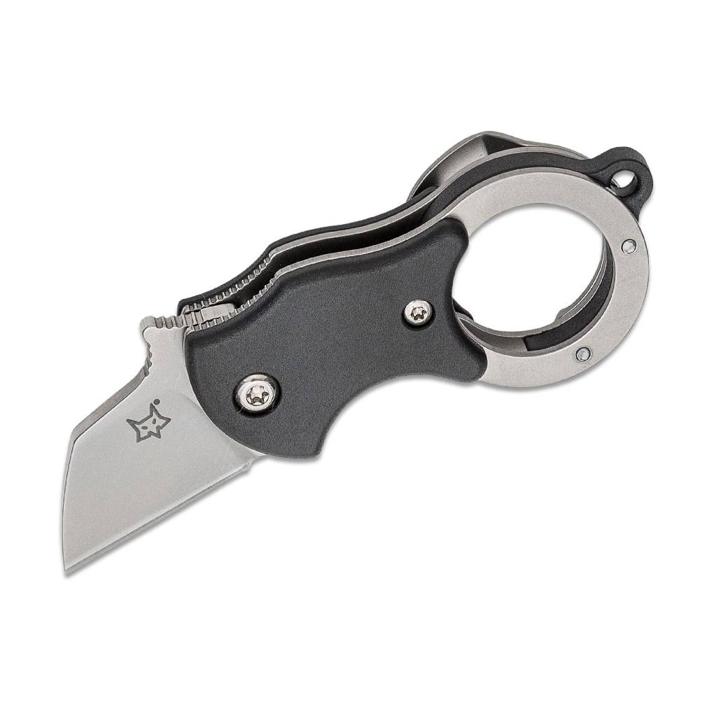 The Fox Mini-TA folding karambit is unbelievably useful as a small package opener or as an ultra-compact everyday knife. Carried with the clip in the pocket or on the keyring, this minimalist karambit is always ready for use. It features fiberglass-reinforced nylon (FRN) handle scales and a 1.4116 stainless steel Wharncliffe blade. Includes an orange/black embroidered Mini-TA with Fox logo flight tag keychain.