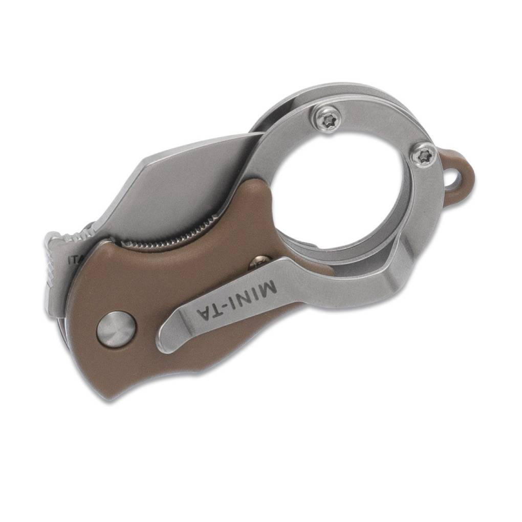 The Mini-TA is a super-compact karambit style knife that makes for an awesome lightweight everyday carry knife. It has a nylon handle with a matching nylon back spacer. A pocket clip or a keyring loop for multiple carry options round out this miniature karambit. Item also includes a pocket clip for more traditional carry.