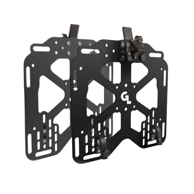 Giant Loop’s award-winning Pannier Mounts offer greater adjustability and are the ultimate quick-release, lockable solution for soft luggage and gear. These mounts are ultra-light and tough, with quick-release, quick-mount, lockable black anodized aluminum plates secure Giant Loop’s Round The World or MotoTrekk Panniers. GL Pannier Mounts can also be used with Rotopax gas/water cans for easy installation on many popular side luggage rack systems. Sold as a set of two, with four matching keys. Stainless steel hardware is included for GL Round The World Panniers installation.